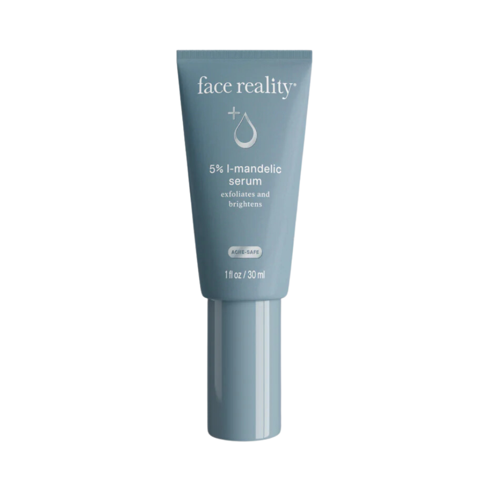 Our gold standard 5% L-Mandelic Serum is an alpha hydroxy acid serum that contains the chirally correct versions of both l-mandelic acid and l-lactic acid. L-Mandelic acid has a larger molecular weight than other alpha hydroxy acids slowing down epidermal penetration resulting in a more even exfoliation with less irritation.